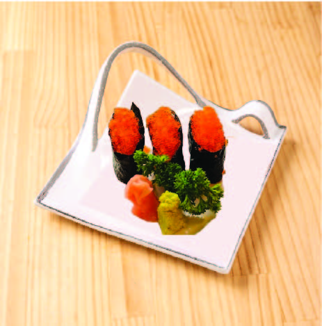 Hand-pressed sushi rice topped with flying fish roe with wasabi(3 pcs)