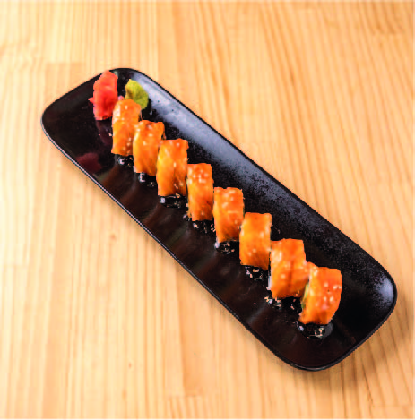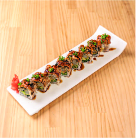 Cucumber, crab meat, avocado and unagi (cooked eel) on top with sushi teri (8pcs)