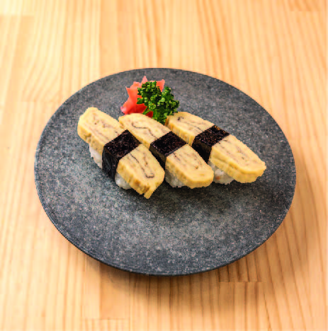 Rolled omelet that includes the ingredient dashi, a Japanese soup stock coated with thin wasabi (3 pcs)