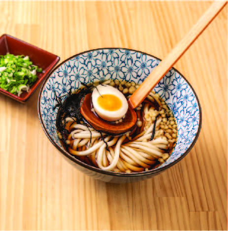 Made with fresh udon noodles and kakejiru, soup stock made with a combination of dashi, mirin, soy sauce, and other flavorful ingredients topped with egg