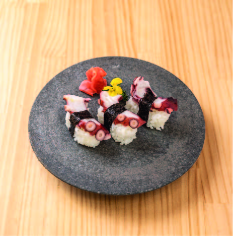 Hand-pressed sushi rice topped with slices of octopus coated with wasabi (3 pcs)