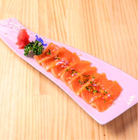 Consists a slice of raw salmon coated with wasabi served over pressed vinegar rice (3 pcs)