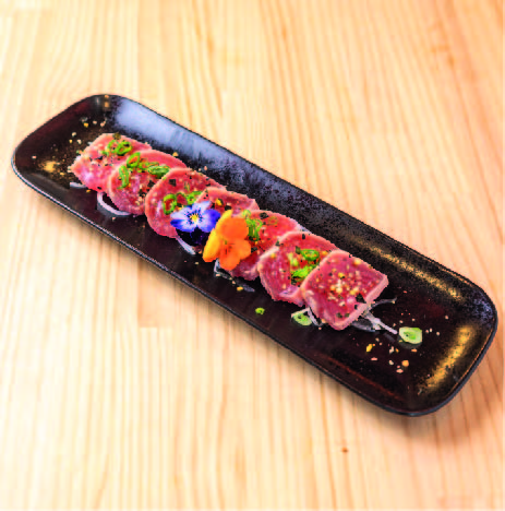 Chopped fresh tuna, sesame oil, spring onion and sesame seeds (2pcs)